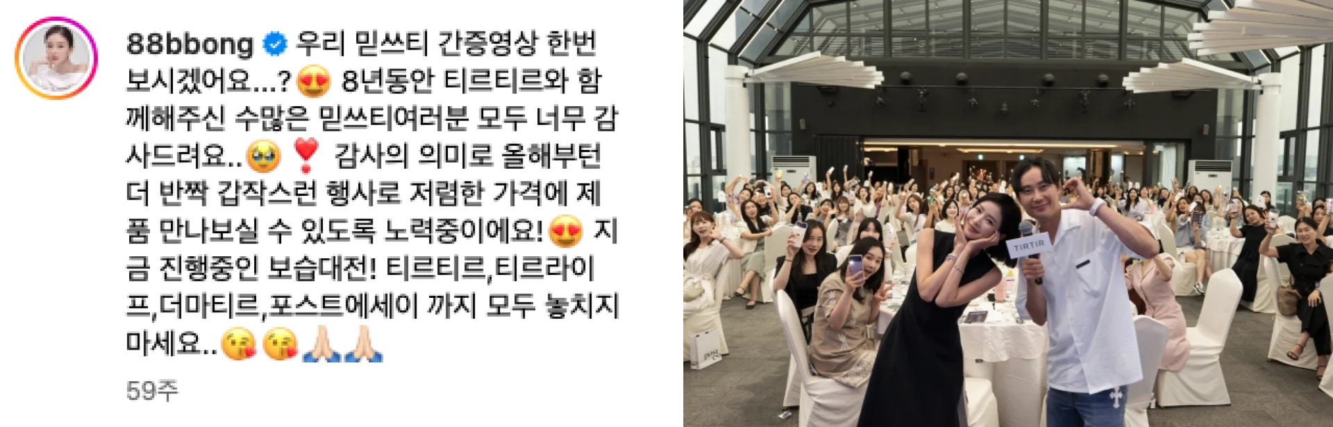뷰티 업계는 기본적으로 인플루언서 마케팅이 중심이다 보니 팬덤 형성에 비교적 유리한 것은 사실입니다. 실제로 티르티르(TIRTIR)의 경우 인플루언서 출신의 대표님이 론칭한 브랜드로 팬들을 ‘믿쓰티(믿고 쓰는 티르티르)’라고 지칭하고 오프라인 행사도 주최하며 팬들과의 소통을 이어가고 있습니다. 탄탄한 팬덤을 기반으로 아마존에서 K뷰티 최초로 판매 랭킹 1위에 오르기도 했죠.