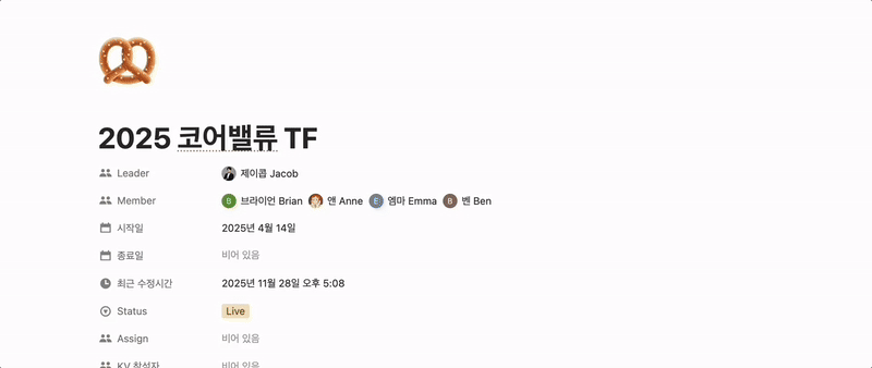 브라이언 기존 코어밸류의 설명 텍스트를 보면 지금 8개에 있는 내용이 거의 다 들어있어요. 직관적인 행동 언어로 쪼개지지 않았던 게 문제였던 거죠. 동사 형태로 바꾸고 나니까 훨씬 실천하기 쉬워졌어요.