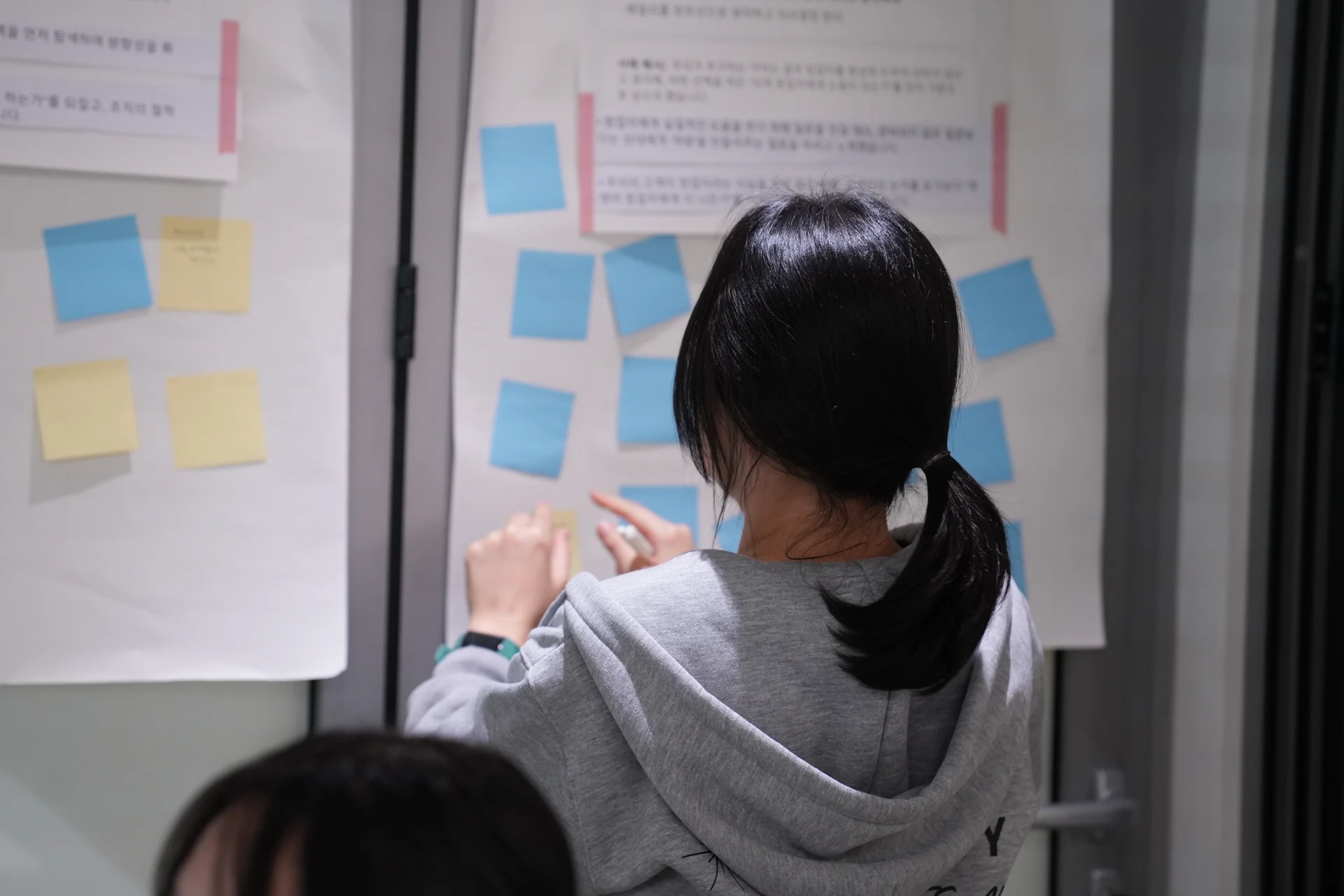 앤 저희가 정말 많이 돌아서 갔어요. 피드백 TF에서는 책에서 정답을 찾을 수 있었는데, 이건 정답지가 없는 거예요! 일단 한 번 나름의 가설을 세우고 설문조사를 한 다음, 우리끼리 이야기를 해봤는데 답이 안 나오면 전문가를 찾아가서 물어봤어요. 다시 조사를 해보고, 나름대로 분석한 후 다시 가져갔더니 이번에는 분석 방법이 틀렸대요. 그러면 다시 했어요. 그 뒤로도 몇 번을 반복했죠. 시행착오가 많았던 게 아쉬웠는데, 지금은 그 모든 게 필연적인 과정 아니었나 하는 생각도 들어요.