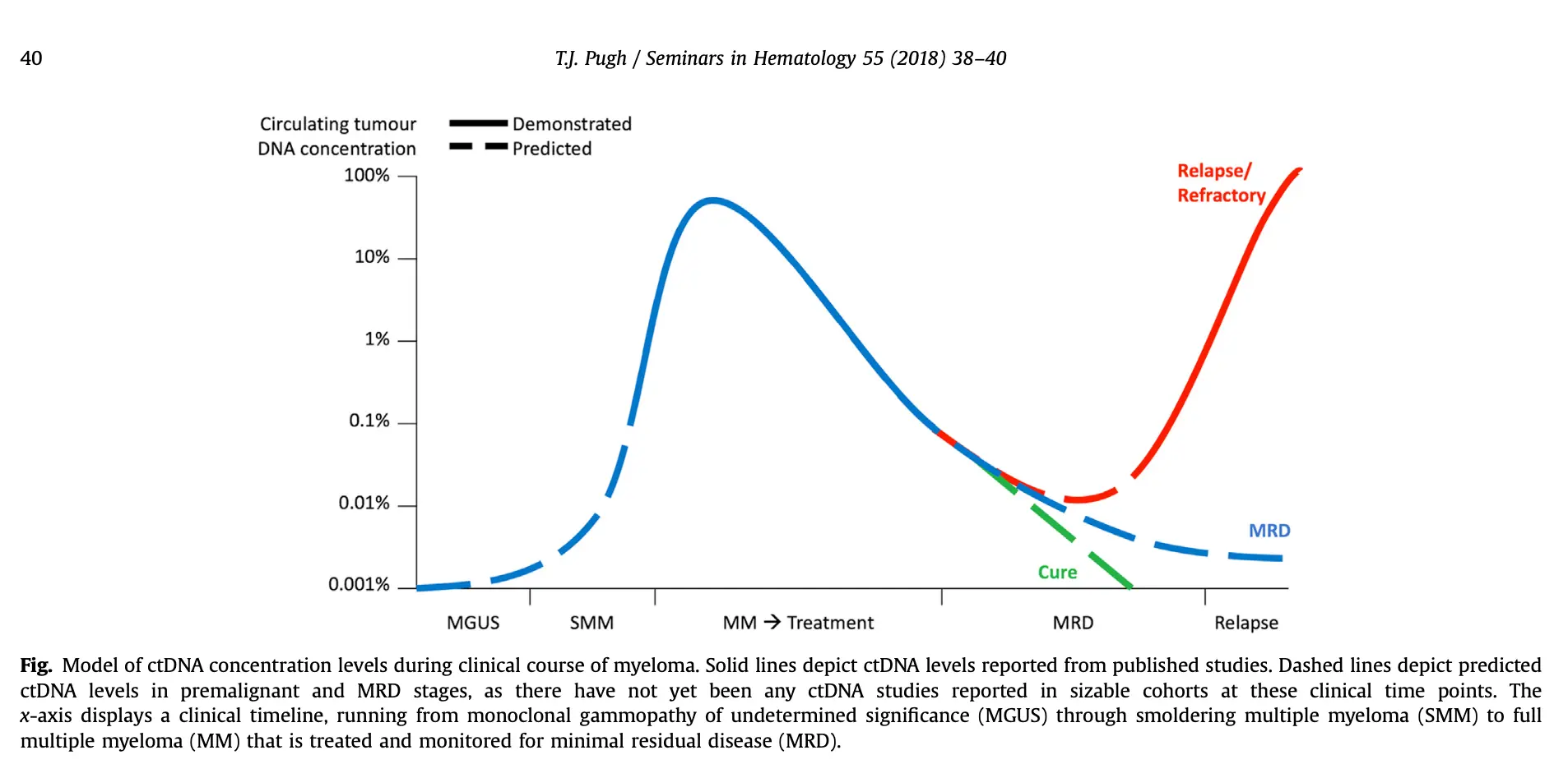 다만 이때 MRD로 감지되는 ctDNA는 혈중 cfDNA의 0.1% 이하일 정도로 소량이기 때문에, 극도로 민감한 기술이 필요하다고 합니다. 항암요법은 괴로운 과정이기 때문에 최대한 안할 수 있다면 좋겠지요. 이처럼 MRD의 존재 여부는 치료의 큰 방향성을 세우는 데 핵심적인 정보로 부상하고 있습니다.