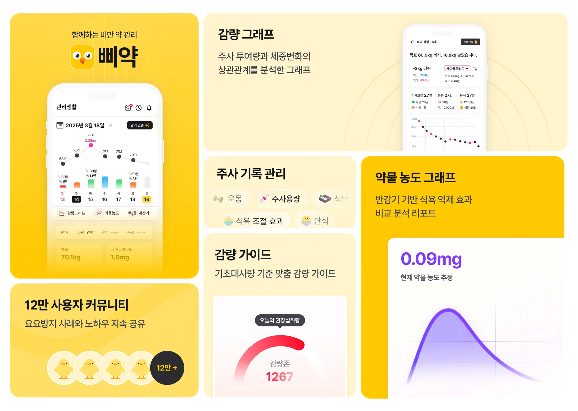 천예슬 대표 비만치료제 가이드라인에는 운동과 식습관을 함께 교정할 때 효과가 가장 좋다고 명시되어 있어요. 생활 습관을 바꾸는 건 결국 병원 밖에서 일어날 수밖에 없죠. 스스로 습관을 기록하고 바꾸려 노력하는 과정에서 나에게 딱 맞는 다이어트 앱이 없다고 느꼈고, ‘비만치료제 사용자만을 위한 다이어트 앱’을 만들고 싶었어요. 삐약은 처음부터 이미 처방받은 분들이 치료를 더 안전하고 효율적으로 이어갈 수 있게 돕기 위해 만들어진 서비스예요.