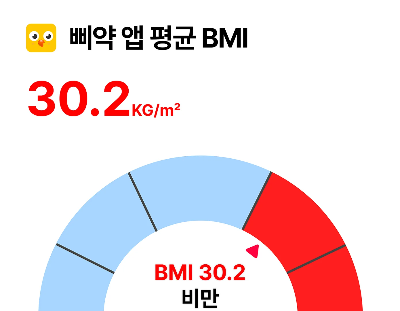 체중 분포도 눈여겨볼 만합니다. 회원가입 시 입력한 키와 체중을 기준으로 BMI를 계산했을 때, 비만에 해당하는 사용자가 60.1%, 과체중까지 포함하면 74.2%에 달합니다.