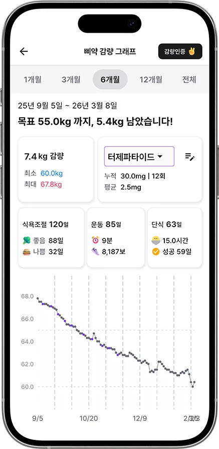 주당 권장되는 감량 속도는 0.5kg~2kg으로, 급격한 감량보다 안정적인 속도를 유지하도록 안내하고 있습니다. 오히려 주의가 필요한 것은 급격한 단약입니다.