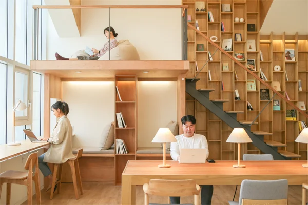건물 단위로 코리빙 라운지와 커뮤니티를 설계하는 홈즈컴퍼니의 홈즈 스튜디오가 대표적입니다. 홈즈 스튜디오는 1인 가구를 위한 전용 공간과 함께, 공용 주방과 라운지, 코워킹 스페이스 등을 갖추고 있는데요. 건물 전체를 하나의 코리빙 커뮤니티로 조성하여 거주자들이 네트워킹하며 생활할 수 있도록 설계된 공간입니다.